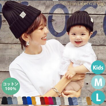 ニット帽 キッズ ベビー 綿100 おそろい 親子 帽子 ペア 赤ちゃん 秋冬 コットン ペアルック 人気 レディース メンズ 送料無料 大きいサイズ ニット帽子 お揃い リンクコーデ おしゃれ 54 医療用帽子 イニシャルラベル対応 コットンラベルニットキャップ Room