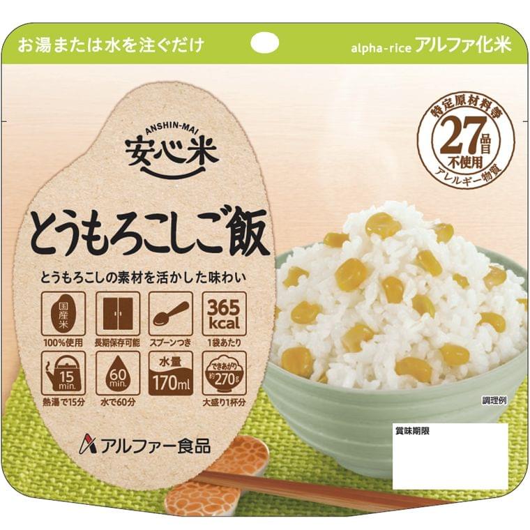 食物アレルギーに配慮した長期保存食 エントリーで全品ポイント10倍 代引不可 アルファー食品 全店販売中 とうもろこしご飯 安心米 100g 50袋